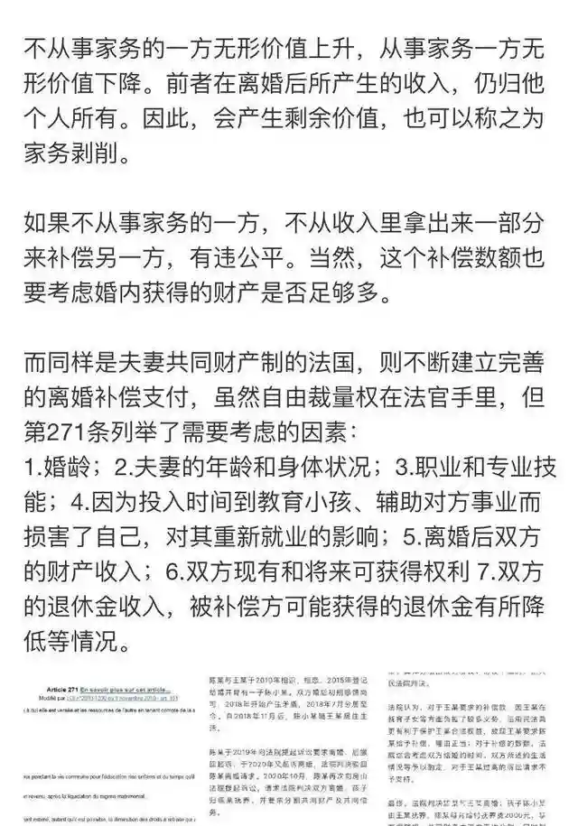 这是北京房山法院适用民法典新规定首次审结的离婚家务补偿案件。这个补偿款是财产平分之后再额外补偿的,有律师认为,这是具有极大进步意义的,是对家务劳动这种无形价值的认可,对全职妈妈权益的保障。