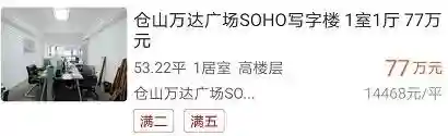 再讲一个案例:仓山万达广场四栋SOHO产品于2011年开盘,售价约1.4万/平,如今在二手房平台上可以查看到,多套带装修的高层SOHO产品挂牌价仅略超14600元/平。十年过去了,几乎没有涨!而如果换做同项目住宅产品,价格早已翻倍。